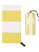 Crafted for coastal living, the Qassar Beach Towel in vibrant yellow and white combines premium absorbency with quick-drying performance. The lightweight, breathable fabric makes it ideal for beach days, poolside relaxation, or travel. Its generous size provides ample coverage while remaining compact enough to pack easily. The striking color combination adds a fresh aesthetic to any seaside setting. Durable construction ensures lasting quality through frequent washing and sun exposure, making it a reliable choice for those who demand both functionality and style.